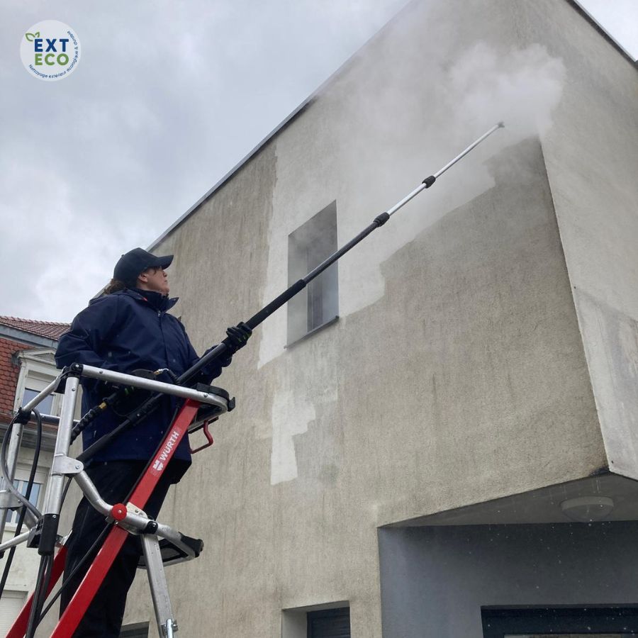 Grâce à la vapeur basse pression, cette façade a été nettoyée et assainie en profondeur, pour un résultat durable.